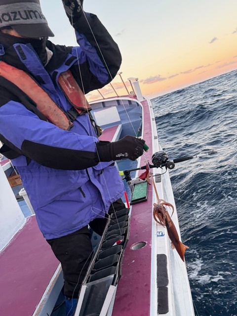 勝浦沖180m前後 スルメ 27~37cm 10パイ ヤリ 22~30cm 6パイ お一人様での出船でした。 海上はすっかり凪て、朝のうちからポツリポツリと釣れました。 後半はオアカやソウダが掛かってきたようです。