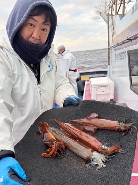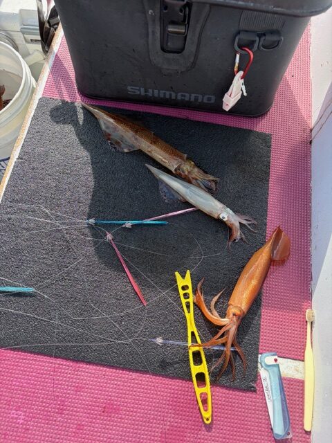 勝浦沖180m前後 23~45cm 8~45ハイ 2番手41パイ 3番手38パイ スルメが1^19ハイ混ざりました。 共に小、中型中心に朝の内が好調でした。